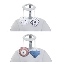 La barra de juegos cuenta con juguetes colgantes de doble cara: por un lado son en blanco y negro para adaptarse a la vista de los bebés más pequeños, mientras que por el otro lado son divertidos animales.